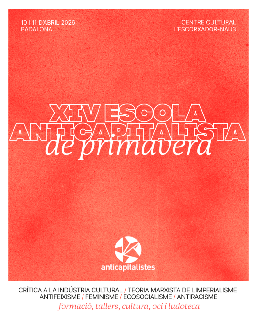 Enguany l’Escola Anticapitalista de Primavera arriba a la seva XIV edició, una fita a l’abast de poques iniciatives autogestionades de pensament revolucionari. Aquesta trobada de formació oberta es durà a terme per tercer any consecutiu a la ciutat de Badalona. En concret, al Centre Cívic l’Escorxador-Nau3. Les dues jornades de debat i reflexió seran el divendres 10 i el dissabte 11 d’abril.